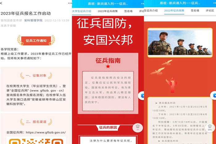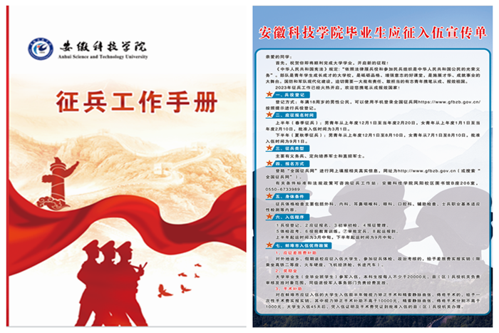 立体化宣传强化新希望。编印发放500多册新半岛官方网站_半岛(中国)征兵工作手册,涵盖法规、政策和征兵工作指南,成为领导干部和一线工作人员征兵的有力帮手。制作发放3500余份“致安科2023届毕业生的一封信”宣传彩页,做到应届毕业生人人知晓应征程序、优待政策和咨询电话。各学院利用主题班会、征兵工作动员大会、辅导员专题会议、谈心谈话等形式,利用班级qq工作群、易班专栏、微信公众号、网站等多媒体矩阵发布征兵动态、传播政策信息,营造立体化、全方位、多层次的宣传新格局,助推征兵工作掀起新高潮。
