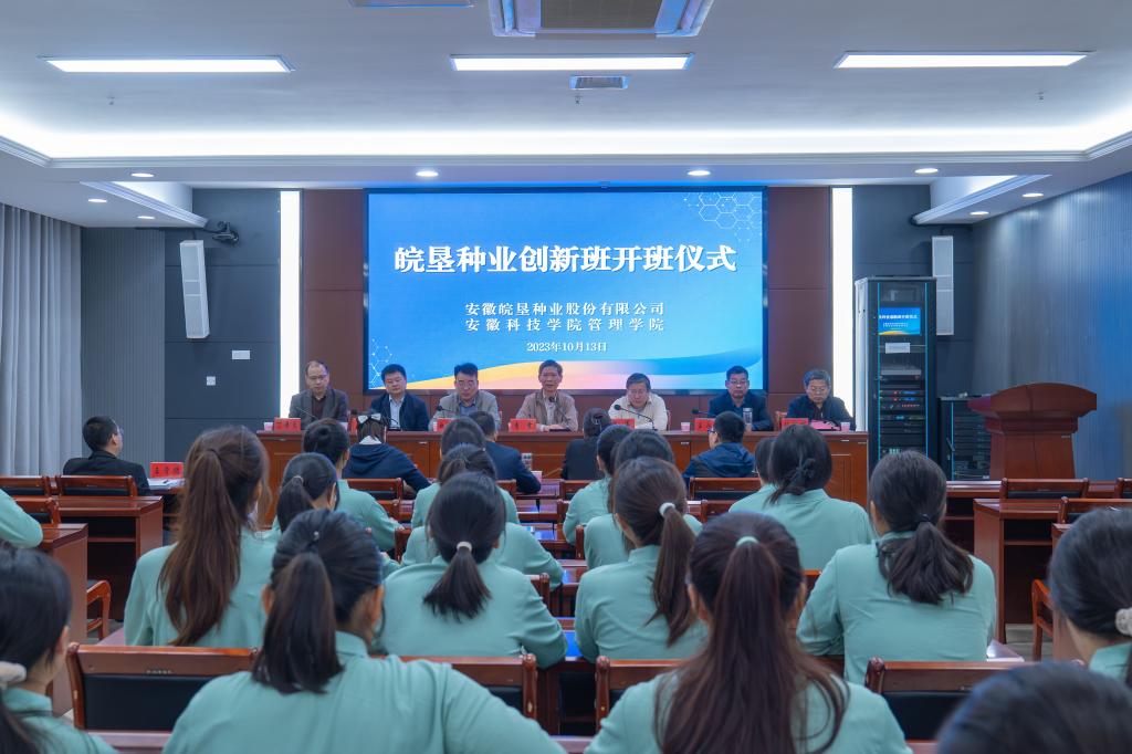 10月13日上午,我校管理学院与安徽皖垦股份有限公司联合举办的“皖垦种业创新班”在龙湖校区正式开班。校党委副书记、院长李震,教务处处长、创新创业学院院长赵伟峰,农垦集团党委委员、皖垦种业党委书记、董事长陈军,农垦集团党建工作部副部长卢子浩,皖垦种业党委委员、副总经理王永玖,产业管理部部长李昂,党群工作部副部长周德林及管理学院党政领导出席开班仪式。开班式由学院党委书记丁景良主持。