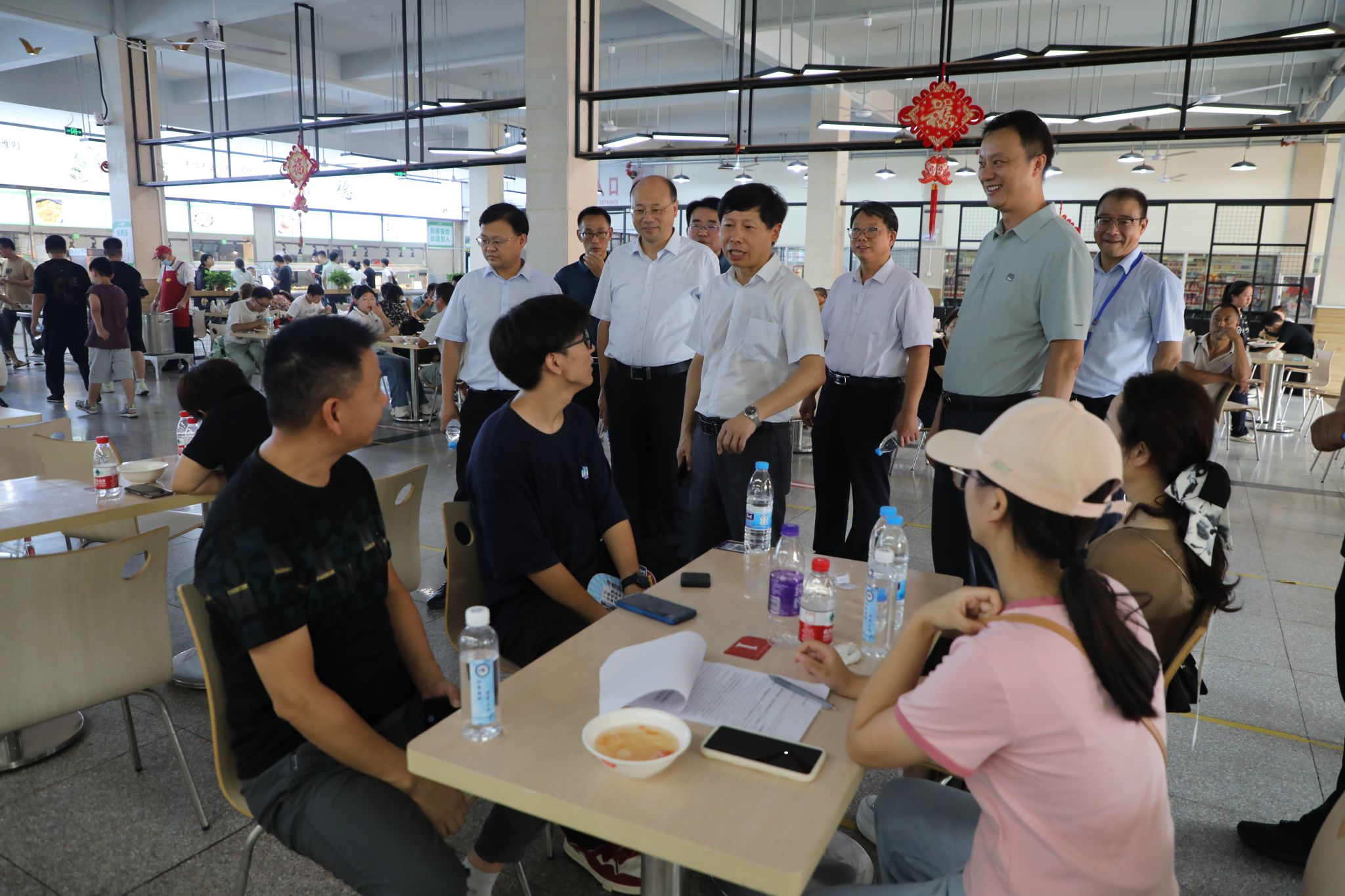 “老家是哪里的?”“乘坐什么交通工具来校的?”“食堂饭菜还吃得惯吗”“饭菜价格还合适吗?”……在实地了解新生入校情况后,校领导依次来到食堂、家长休息区、学生宿舍区等地与新生及家长亲切交谈,逐一解答了家长心中的疑惑,并勉励新生们自立自强,尽快转变角色,及早融入大学生活。