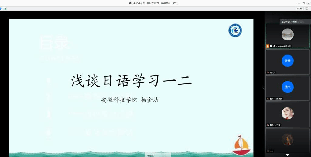 为进一步丰富外国语学院学生校园文化生活,拓宽学生对日本文化的了解和认识的知识面,领略日本的风情,诠释日语之魅力。外国语学院于5月31日晚上利用腾讯会议举行“英博杯”新半岛官方网站_半岛(中国)第十一届外语文化节之日本风情讲座。本次讲座邀请外国语学院杨金洁老师担任主讲人,外国语学院18级全体学生和部分19级学生到会聆听,外国语学院专职辅导员宋兵兵主持本次讲座。