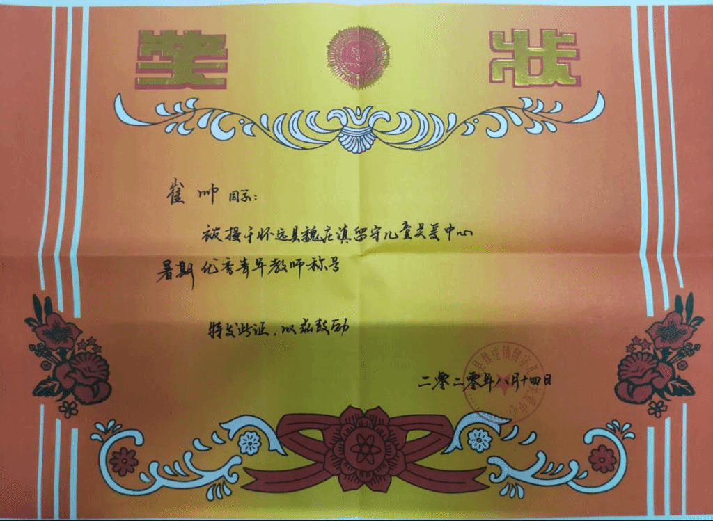 崔帅说到:“我给我的学生讲了大学的精彩,讲了高考的经历,我能看到孩子们眼睛里闪烁着希冀的目光,更能够感受到他们作为农村留守儿童希望走向更广阔的世界的渴望。”与城市里的孩子“学钢琴”、“学绘画”、“上辅导班”不同,在农村,这些留守儿童课下接触的更多是“摔皮卡”、“弹溜溜”、“跳皮筋”等等游戏,虽然童年时光欢乐了许多,但在思想上,他们很少接触到更广阔的世界。志愿者在支教过程中,传授的不仅仅是课本上的知识,更是启发他们用眼睛用心探索世界,让农村的留守儿童接触到更多外面世界的东西,让他们产生“读书改变命运、学成造福家乡”的思想。