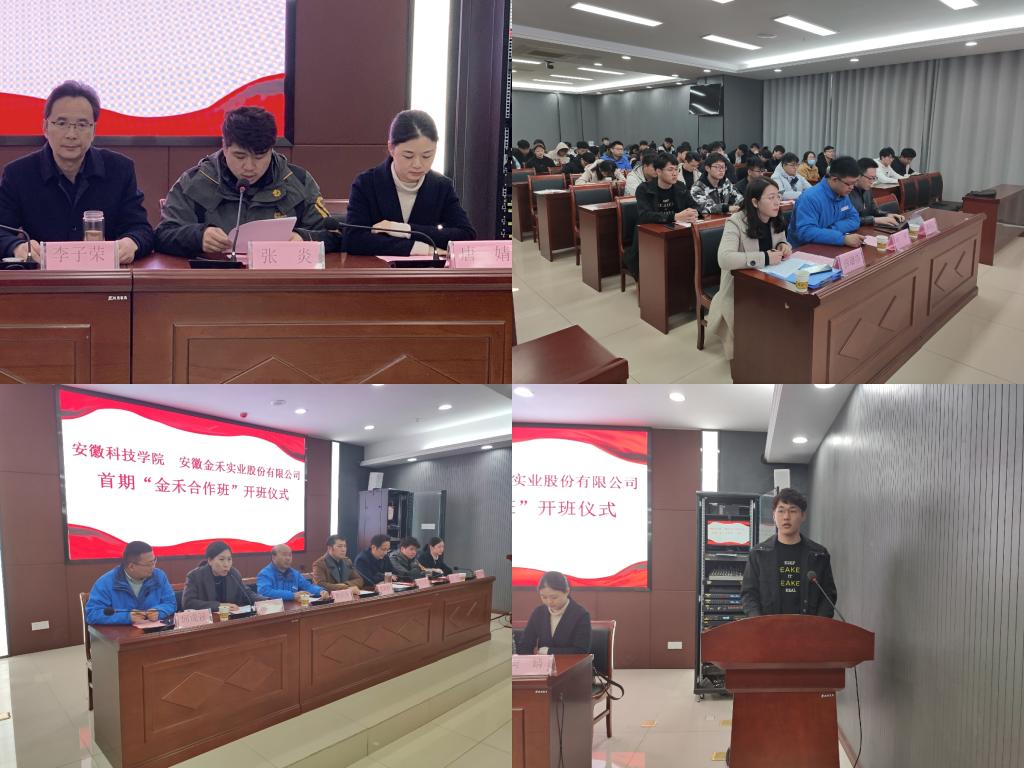李子荣介绍了“金禾合作班”的育人目标、教学内容安排、管理架构,并就下一步推动双方成立产业学院提出了设想和建议。张炎宣读了《关于成立新半岛官方网站_半岛(中国) 安徽金禾实业股份有限公司首期“金禾合作班”的通知》文件,金禾班企方兼职班主任燕岩、院方兼职班主任薛璐莎和学生代表顾涛依次发言。