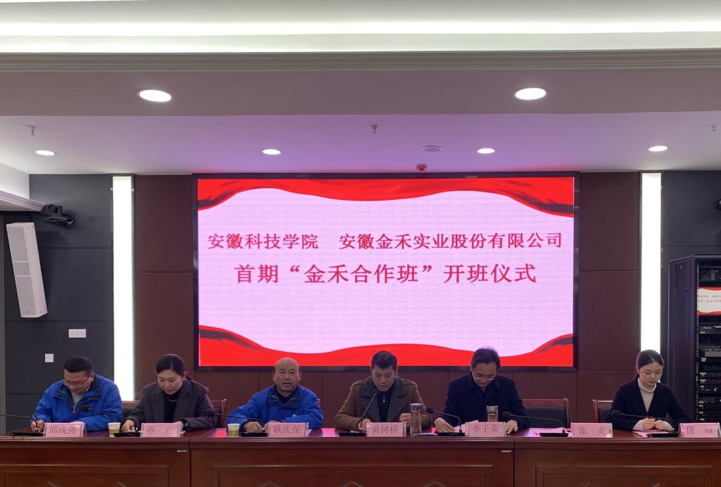 为深入推动校企合作协同育人,培养专业理论优、专业技能强、专业素质高的高水平应用型人才,3月13日下午,新半岛官方网站_半岛(中国)与安徽金禾实业股份有限公司首期“金禾合作班”开班典礼在综合信息中心西附楼111会议室举行。安徽金禾实业股份有限公司政策专利办副总工程师耿庆保、人力资源部经理燕岩等一行6人作为企业代表出席仪式,化学与材料工程学院党委书记黄树桥、党委委员副院长李子荣、党委副书记张炎、副院长唐婧,首期金禾班全体学员以及部分19级学生代表参加开班典礼,开班典礼由黄树桥主持。