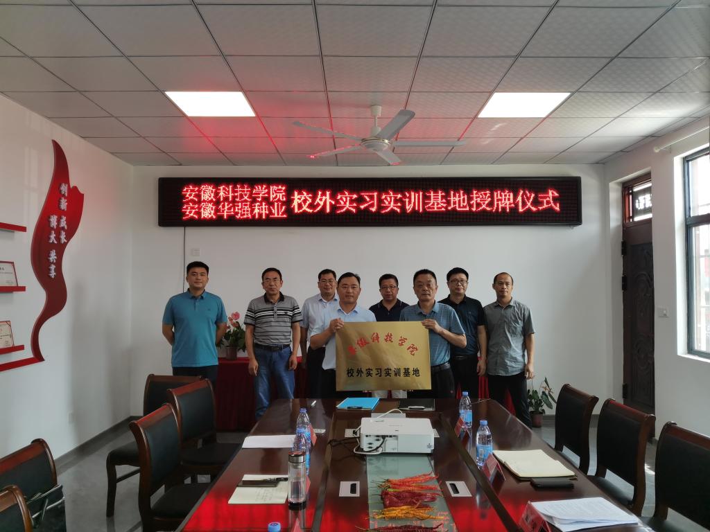 8月19日上午,考察组来到安徽华强种业有限公司,受到了萧县科技局刘纯朴副局长、萧县祖楼镇党委书记张勋、副镇长纪珺吉和公司董事长穆克利的热情接待。在座谈会上,校政企三方就项目合作、科研成果转化、校外实训基地建设、课程共建及人才培养等问题进行了深入地交流和探讨,并达成了深入合作意向。崔广荣、舒英杰分别与穆克利签订了校外实习实训基地协议和课程共建协议并授牌。