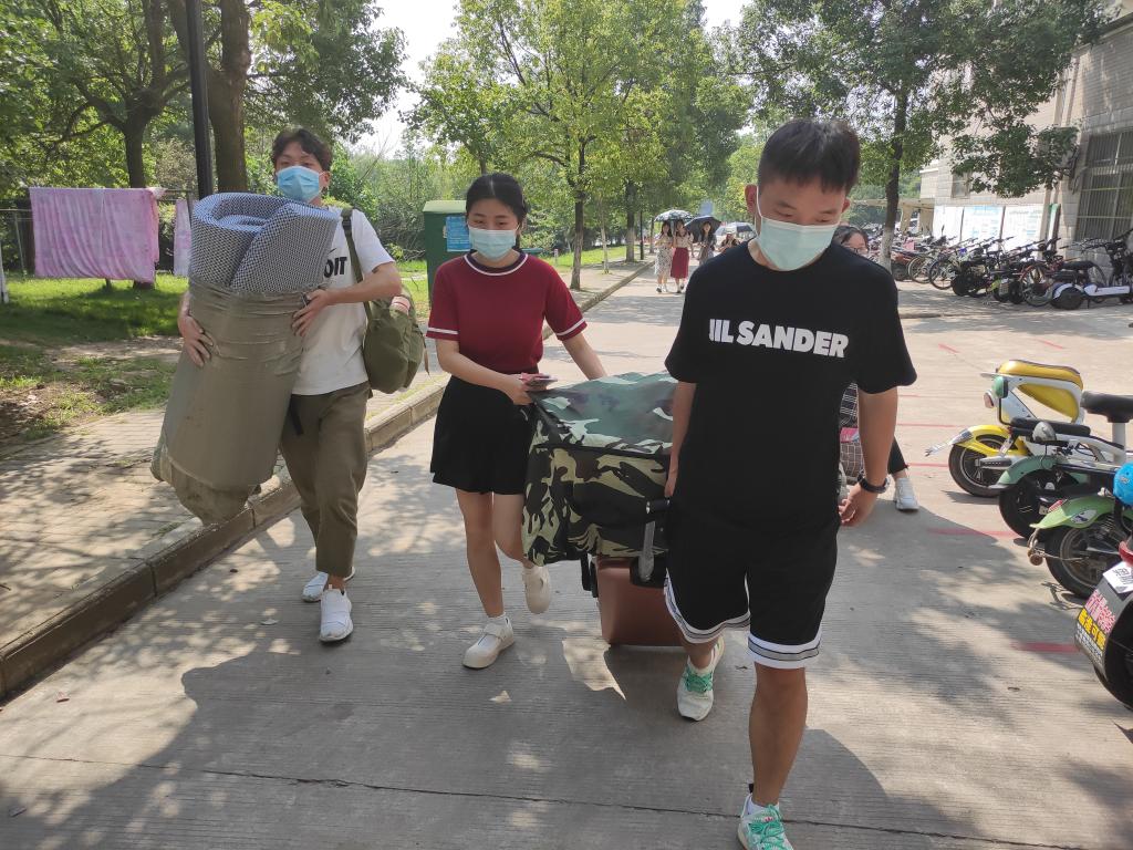学院迎来的第一位学子是来自亳州市蒙城县的李恒,还有同是来自六安市金安区的何辉和翟佳俊。他们三人结伴同行,也一同成为了生命与健康科学学院的一份子。面对笔者的采访他们坦言,都对未来的学习和生活充满期待。当笔者询问三人对校园的第一印象时,他们这样答道:“整个学校掩映在郁郁葱葱的绿植中,教学楼鳞次栉比,阳光下的校园充满活力,拥有这么好的学习环境,我相信未来的校园生活一定多姿多彩,我们也会在这里继续努力奋斗,不辜负老师和家人的期望。”