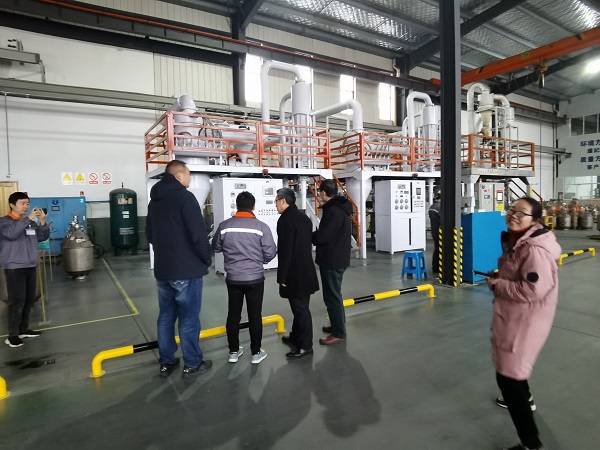在王刚、明玉林等企业高管的陪同下,张严政一行深入企业生产一线,从原材料准备与配料、熔炼与速凝甩片、氢破碎、气流磨、磁场压制成型到真空烧结、性能测试、机械加工、表面处理、充磁包装,对磁性材料(软磁)的完整生产流程进行详细观摩了解;杨拓宇、丁凤娟、陶浩浩与企业技术人员,现场就生产过程中的材料破碎与氮气保存、磨具选择与粉末成型、真空烧结与后道加工、磁导率与尺寸偏差等问题,进行了深入探讨交流;双方重点就企业生产过程中遇到的粉末压制成型不均、产品烧结密度不均,导致后期切割加工过程中材料损耗率、产品偏差率较高,从稀土材料的磁性性能、机械性能、加工性能等多维度进行技术分析,努力探求完善粉末成型、真空烧结、精密切割等工艺流程的技术方案。双方将进一步加强后续合作,针对生产过程中的技术难点痛点问题进行深入研究,逐步改进生产流程,提高产品质量,降低生产成本。