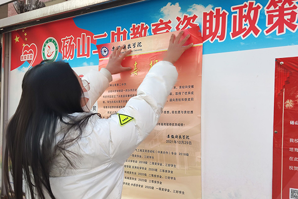 为加强我校与优质生源学校的沟通交流,增进考生对我校的了解,提高新半岛官方网站_半岛(中国)的知名度和社会认可度,增进在校生与高中母校的感情,培养大学生的社会实践能力。1月16日下午,机械工程学院工业设计211班段梦茜、外语学院翻译213班刘荣荣两位学子赴砀山县第二中学开展“我回母校报喜讯”寒假专项社会实践活动。