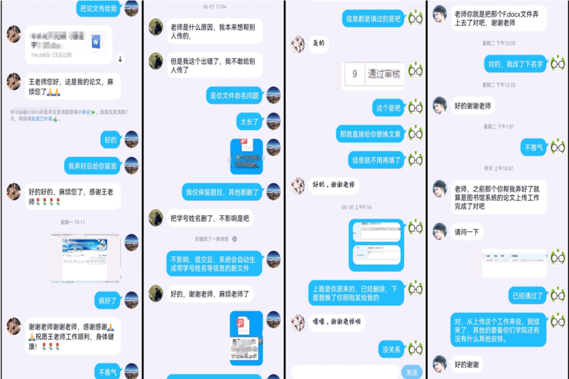 做好毕业服务,助力扬帆起航。在毕业季到来时,图书馆党员干部深入践行服务理念,精心组织,周密部署,认真做好毕业生纸质图书归还及学位论文审核工作,助力毕业生按时顺利离校。流通部在党员干部带领下坚守岗位,精细准备,热情周到地为毕业生办理图书归还和逾期处理工作;为保障受疫情影响无法返校的毕业生无障碍上传论文,技术部党员干部在校网络中心鼎力支持下开通VPN上传毕业论文服务,且对上传论文遇到困难寻求帮助的读者提供耐心指导,直至帮助上传论文,真正做到“一对一服务”,用实际行动温暖着每个毕业学子的心田。