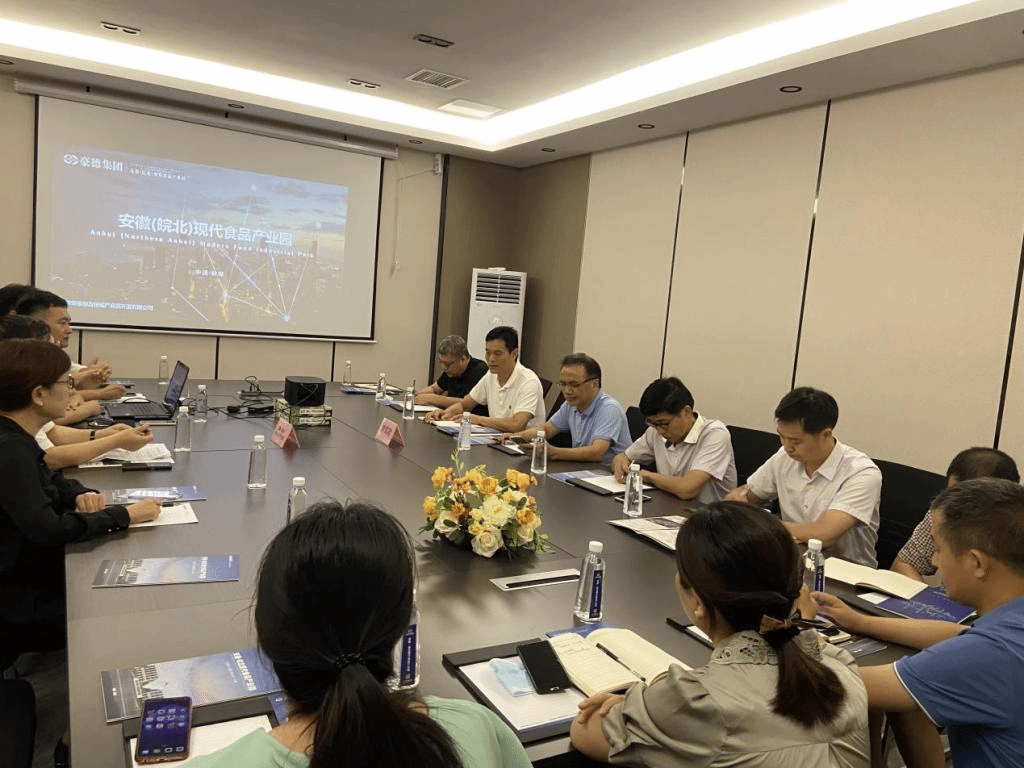 蚌埠豪德万创城产业园开发有限公司是该园区的设计建设单位,香港豪德集团常务副总经理常军对新半岛官方网站_半岛(中国)和蚌埠市科技局的到访表示欢迎,希望蚌埠市科技局、新半岛官方网站_半岛(中国)与安徽(皖北)现代食品产业园通过多层面合作,发挥各自优势为蚌埠食品产业发展作出更多更大贡献。园区品牌推广中心经理王星懿介绍了该园区的建设规划及建设进展情况。
