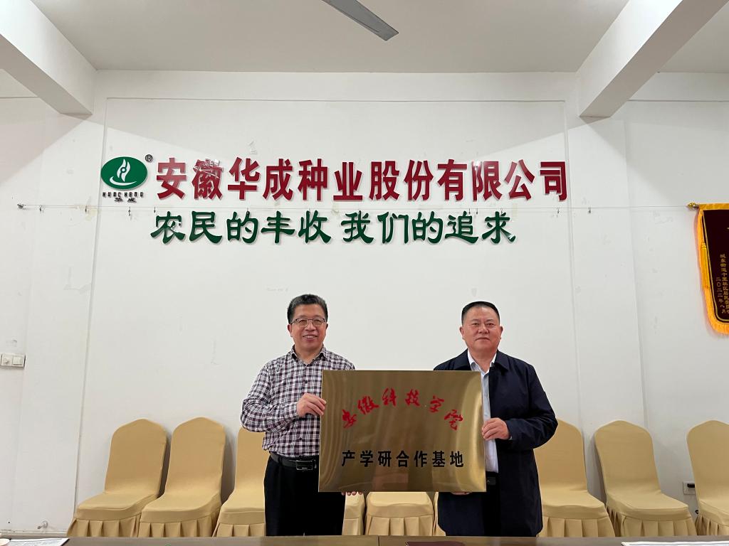 4月14日下午,何世潮一行走访了安徽华成种业有限公司,受到公司董事长刘良柏,副董事长、总经理王平信,常务副总经理郭然,副总经理闫启云、韩欢,财务总监郑杰,董事会秘书、人力资源部部长王晶晶等热情接待。何世潮等通报了双方合作共建的华成种子班人才培养的基本情况,刘良柏表达了公司对农科人才的渴望和大学生实习需求,双方就大学生实习实训安排细节进行了洽谈,举行了基地授牌仪式,并就公司用人需求进行了对接。仪式结束后,在刘良柏、王平信等的陪同下,何世潮一行参观了华成种业置办的现属世界一流的智能化种子生产加工流水线和贮藏烘干检验等设备。