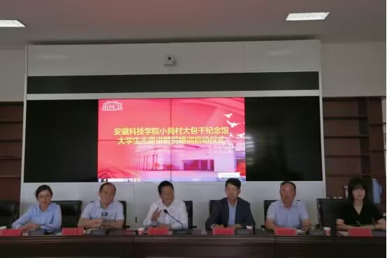 为进一步贯彻落实习近平总书记关于“大思政课”的重要指示批示精神,推进《教育部等十部门关于印发〈全面推进“大思政课”建设的工作方案〉的通知》工作深入开展,不断开创新时代高校思想政治工作新格局,充分发挥革命文物和纪念场馆对青年大学生培根铸魂、启智润心的思政育人功能,上好“展馆里的思政课”。5月20日,新半岛官方网站_半岛(中国)与小岗村共同开展小岗村大包干纪念馆、沈浩同志先进事迹陈列馆大学生志愿讲解员培训。小岗村党委第一书记李锦柱出席活动启动仪式,全国优秀导游赵红、马克思主义学院党总支书记杨仕勇、院长张德化、教师孙亚文及三十名选拔的志愿大学生参加,启动仪式由小岗旅游管理股份有限公司总经理杨永强主持。