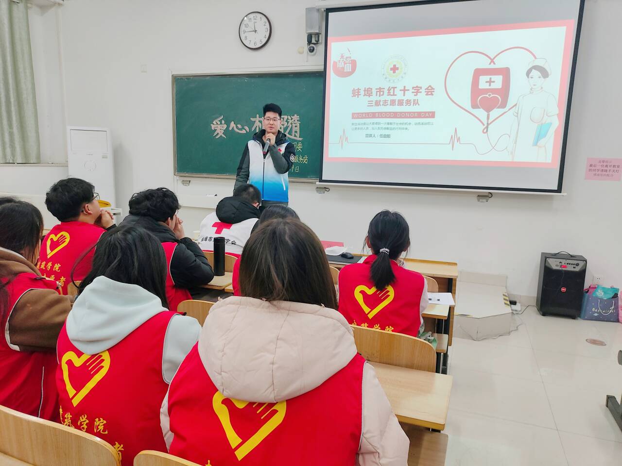 在第38个“国际志愿者日”来临前夕,11月29日晚,建筑学院组织开展了“向上向善好青年”青春故事分享会。安徽省优秀共产党员、蚌埠市第一人民医院团委副书记徐杨,“蚌埠好人”任启阳应邀主讲,徐杨学雷锋志愿者服务队部分成员,建筑学院青年志愿服务站成员、青马学员及党员近100人参加分享会。分享会由建筑学院团委书记沈德艳主持。