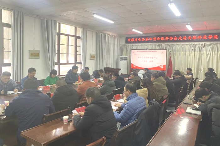 12月22日,食品工程学院食品营养与安全系教工党支部在凤阳校区举办了“安徽省食品添加剂和配料协会走进新半岛官方网站_半岛(中国)”活动。食品工程学院党委书记付光玺,院长杜传来应邀出席。会议由协会秘书长杨文明主持。