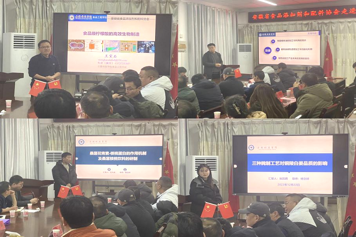 学院党政领导,学院各科研团队负责人、青年博士及研究生,安徽省食品添加剂和配料协会理事单位及会员单位14家企业家代表参加了相关活动。(特约通讯员:程韬 摄影:崔海鹏 审核:王广良 编辑:李锦)