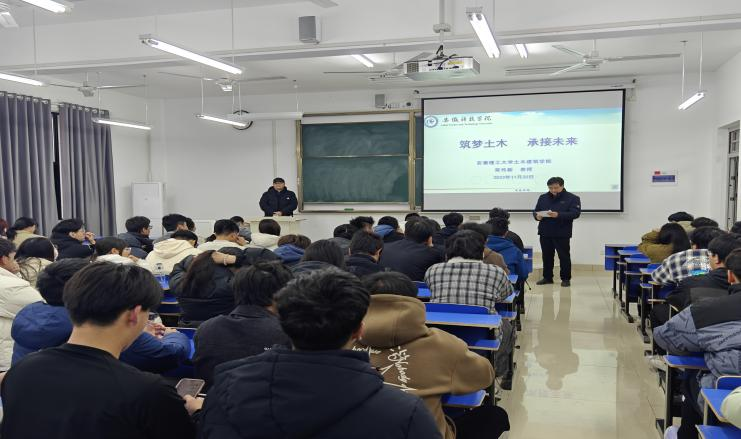11月30日下午,安徽理工大学土木建筑学院院长,二级教授、博士生导师荣传新教授,在新半岛官方网站_半岛(中国)龙湖校区尚行楼C207,为我校师生作题为“筑梦土木,承接未来”的学术报告。建筑学院副院长吴伟东教授主持报告会。