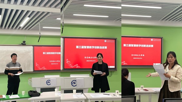 10月12日下午,马克思主义学院第三届智慧教学创新选拔赛在求知楼B303智慧教室举办,学院党总支副书记、院长张德化,副院长张栋出席了比赛。教学技术科赵诗礼老师和校往届智慧教学一等奖获得者潘云翠及袁玲老师应邀担任选拔赛评委,马克思主义学院部分专职教师到场观摩学习。