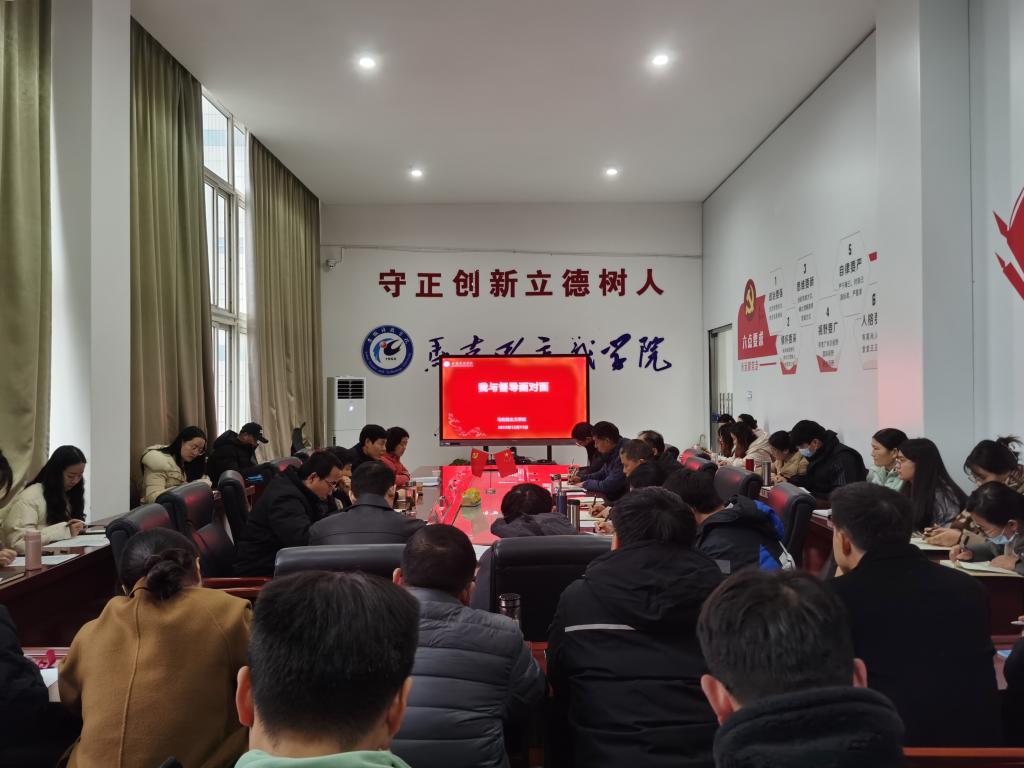 为了切实提升马克思主义学院青年教师教学能力,提高思想政治理论课课堂教学质量,12月13日下午,我院在学院会议室开展了“我与督导面对面”活动。活动邀请校督导考核办公室主任王培章,校督导员张雪梅、陆山花等专家现场指导。活动由院长张德化主持,学院党总支书记杨仕勇和青年教师参加。