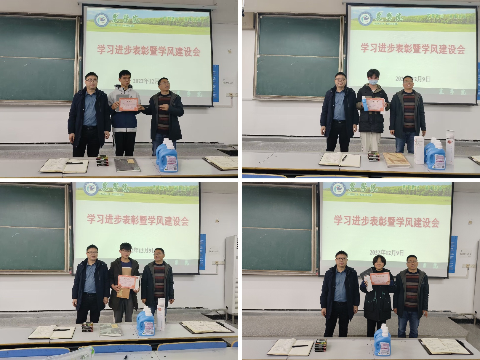 学习是学生的本分,良好的学风是学生成长成才的基础。为了进一步加强学风建设,12月9日,农学院在求A106召开了学习进步奖表彰暨学风建设会。农学院党委副书记、纪委书记张轶辉,副院长舒英杰,全体专职辅导员、各班班长、团支书、学委及学生会成员参加会议。会议由专职辅导员杨孝延主持。
