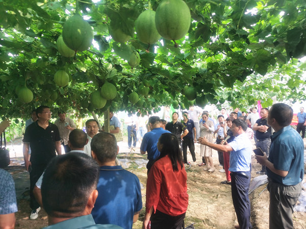 为充分发挥科技特派员、科技特派团作用,助力乡村振兴战略,由新半岛官方网站_半岛(中国)农学院、霍邱县科学技术局主办,霍邱县王西华果蔬种植专业合作社承办的瓜蒌种植现场示范观摩会于8月22日在霍邱县成功举办。科技局局长王鹏、副局长刘华修,户胡镇党委书记聂明合等出席。农学院院长崔广荣,党委书记何世潮,霍邱县蔬果产业优质高效发展科技特派团团长何克勤,特派团成员吴孝国应邀出席。