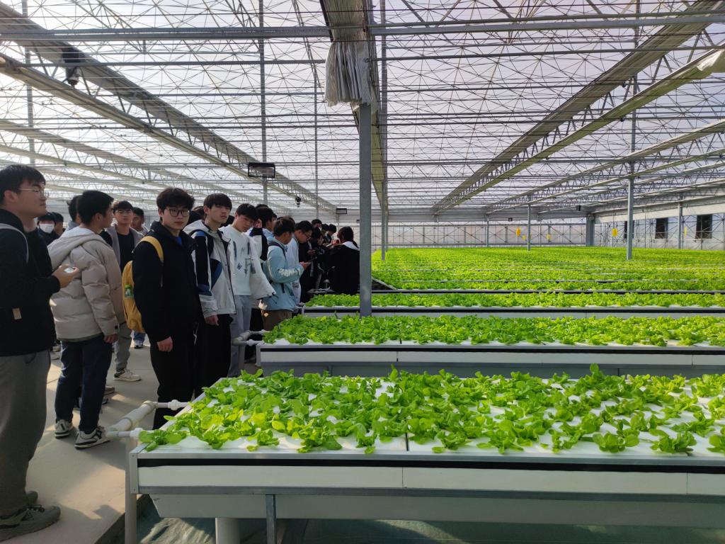 园区经理沈旭热情接待了农学院师生,并向大家介绍了太空农场的建设理念、规模、种植模式及发展思路等。同学们在工作人员的带领下参观了土楼形科普体验温室、金字塔形科技展示温室、以及鸟巢形植物工厂温室等现代化农业设施及智能化栽培管理模式。