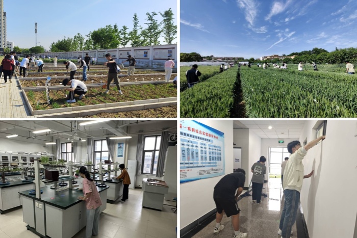结合专业实际,夯实劳动实践学院采用专业实践性劳动、日常生活性劳动和志愿服务性劳动相结合的模式,引导和组织学生广泛参与劳动体验,激励学生弘扬劳动品德、培养劳动技能、磨砺奋斗品格。5月8日-5月9日,农学院组织了别开生面的田间劳动活动。5月10日,农学院在躬行楼三号、四号楼部分楼层,开展了一场实验室打扫实践活动。
