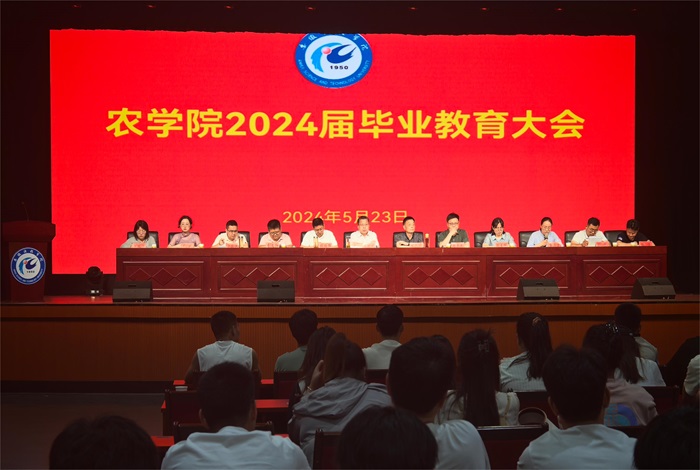 5月23日,农学院2024届毕业生毕业教育会在大学生活动中心隆重举行。农学院党政领导、全体辅导员、全体本科毕业生、全体研究生毕业生参会。会议由农学院党委书记何世潮主持。