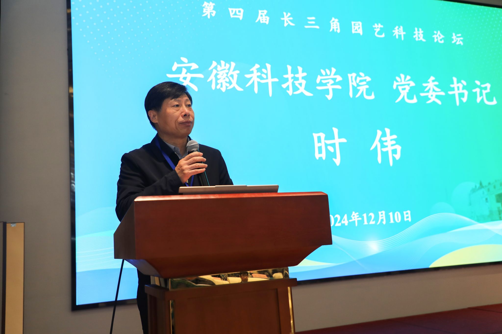 为深入贯彻习近平在扎实推进长三角一体化发展座谈会上的讲话精神,加强长三角三省一市园艺科技人员学术交流,活跃学术氛围,推动长三角地区园艺产业一体化高质量发展,12月10日,由安徽省园艺学会、江苏省园艺学会、浙江省园艺学会和上海市园艺学会共同主办,我校与安徽省农业科学院联合承办的第四届长三角园艺科技论坛在我校举行。论坛的主题是“协同创新园艺科技,发展新质生产力,支撑园艺产业”。学校党委书记时伟出席活动并致辞。