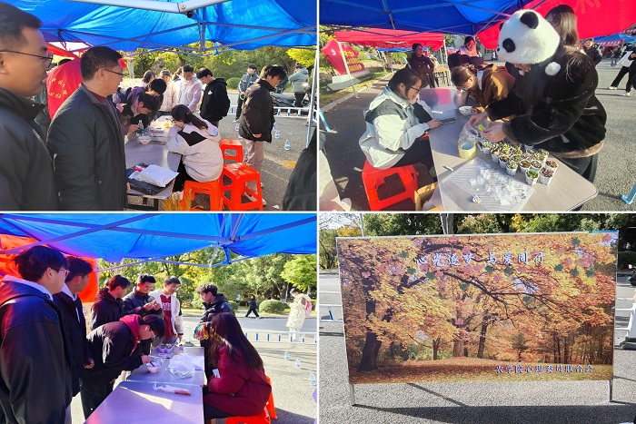 11 月 27 日,农学院于东区五四广场举办“一院一主题心理游园会”。以“心沐阳光,幸福绽放”为主题,活动吸引众多师生参与,现场热闹非凡。游园会设置多项特色活动,“夹豆子”锻炼专注力与耐心,展板区可供匿名书写情绪,投麦穗、套圈活动也人气颇高。活动结束后,参与者获树叶书签、多肉、胸针等小礼品。