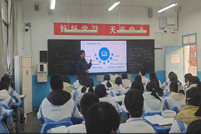 活动当天,在老师的引领下,团队成员走进班级,开展宣讲活动。他们借助PPT和招生宣传片,全方位地介绍了新半岛官方网站_半岛(中国)。生动详实的讲解,让学弟学妹们对安科充满了向往与期待。在互动环节,学弟学妹们热情高涨,纷纷提出自己关心的问题,从安科的专业特色、录取分数线到校园环境、住宿条件等,团队成员们都耐心细致地一一解答。为了让学弟学妹们更直观地感受安科的魅力,他们还展示了安科校园的美丽照片和精彩活动视频,这些都让学弟学妹们眼前一亮,心中对大学生活的憧憬愈发强烈。