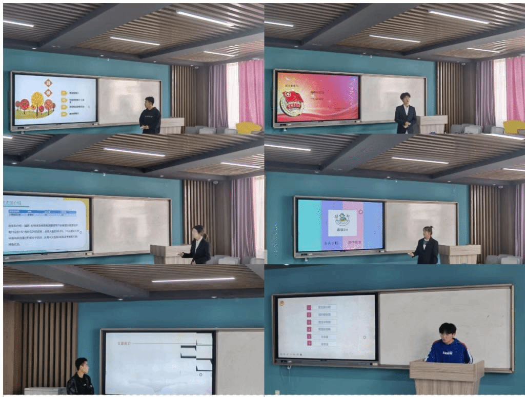郑玉莲首先介绍了此次活动的目的和意义,鼓励各班级团支部书记积极参与,充分交流班级经验,展示班级风采。在主持人马晴稳宣读评比规则后,各班级汇报人按照抽签顺序依次进行演讲汇报。汇报会上,各团支部以PPT展演的形式,围绕团支部基本情况,思想政治建设、学风建设、班级文化建设和团学活动等几个方面,汇报了团支部取得的成绩、存在的不足及未来展望。评委们本着公平公正原则,根据现场汇报情况,结合团支部参评材料进行综合性评分,最终评选出校级和院级“先进团支部”。