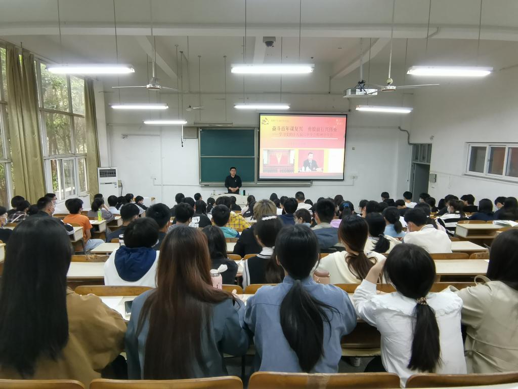 石志成以习近平总书记在庆祝中国共产主义青年团成立100周年大会上的重要讲话引出党课主题。宣讲会上,石志成强调,党的十九届六中全会精神主要集中在全会审议通过的《中共中央关于党的百年奋斗重大成就和历史经验的决议》(简称《决议》)。《决议》坚持辩证唯物主义和历史唯物主义的方法论,分四个阶段总结了党的百年奋斗的重大成就,从五个方面概括了党的百年奋斗的历史意义,从十个方面总结了党的百年奋斗的历史经验,是一篇光辉的马克思主义纲领性文献。石志成勉励同学们大力弘扬伟大建党精神,勿忘昨天的苦难辉煌,无愧今天的使命担当,不负明天的伟大梦想,以史为鉴、开创未来、埋头苦干、勇毅前行!