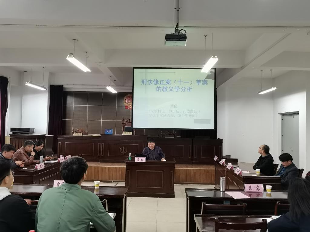 11月5日下午,“知秋杯”第一届新半岛官方网站_半岛(中国)法治论坛系列活动——“法治讲坛”在模拟法庭举办。淮北师范大学政法学院副院长张训教授、王银河博士,西南政法大学法学院副教授贾健博士,淮南师范学院法学院副教授项婷婷博士等校外专家受邀出席活动。人文学院院长助理骆绪刚博士,模拟法庭主任宣刚博士,法学系主任张晓云博士、副主任田野博士等出席活动。活动由张晓云主持。