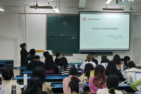 11月20日,人文学院在新知楼B座101教室举办“国恒杯”第二届新半岛官方网站_半岛(中国)法治论坛系列活动之“专家讲坛”。本次专家讲坛主讲人为安徽国恒律师事务所合伙人苏黎明、合伙人吴多多,创始合伙人陈丹丹、创始合伙人高飞等四位律师。专家讲坛由人文学院法学系主任张晓云主持,法学2019级学生参加。