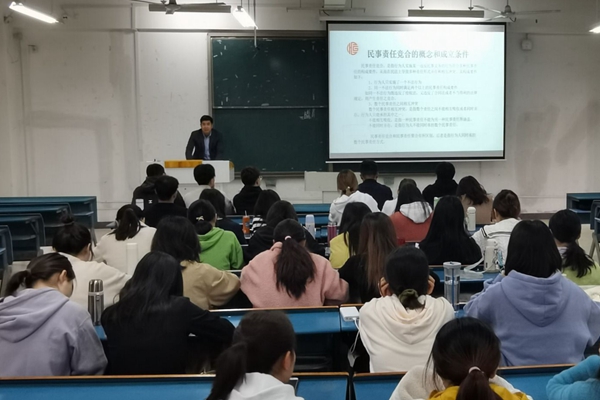 苏黎明向学生们讲解了民事责任竞合的概念与成立条件,用以案说法的方式具象法律条例,给学生讨论与表达自己见解的机会,调动学生的思考和参与积极性,帮助学生更为深刻的理解与体会此专题的内容。