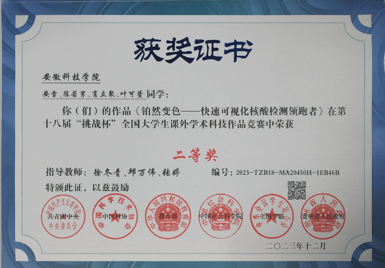 学生成果:近年来学院注重学生创新创业能力培养,在勇夺第五届安徽省“互联网+”大学生创新创业大赛冠军基础上,获第五届(2019年)中国“互联网+”大学生创新创业大赛银奖,创造了新半岛官方网站_半岛(中国)在该项赛事上历史最佳成绩。学生在第十八届“挑战杯”全国大学生课外学术科技作品竞赛中获得银奖1项。学院学生英语四六级考试一次性通过率达50%多和15%左右;计算机等级考试一次性通过率达98%以上;学生在全国大学生英语竞赛(C类)中多次获得一等奖、二等奖、三等奖;安徽省第九届“挑战杯”安徽省大学生创业计划竞赛金奖1项;全国“创新杯”大学生创业项目大赛入围复赛1项;安徽省职业生涯规划大赛二等奖1项;有3人次获得安徽省大学生艺术展演二等奖;2018年以来,共荣获安徽省大学生动植物标本大赛一等奖4项、二等奖12项和三等奖10项;全省大中专学生志愿者暑期“三下乡”优秀团队1项;“徽府茶行杯”大学生茶文化创新大赛团体竞赛优秀奖1项;学生申报并获批国家级、省级和校级大学生创新创业课题150多项,大学生公开发表学术研究论文40多篇。(2025年3月)