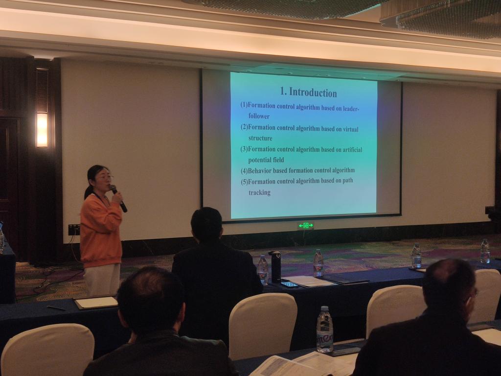 在4月1日下午分会场报告中,我校齐雪副教授受邀做了《基于虚拟结构的水下机器人三维编队控制》的主题报告,并与参会的专家学者进行了深入讨论。
