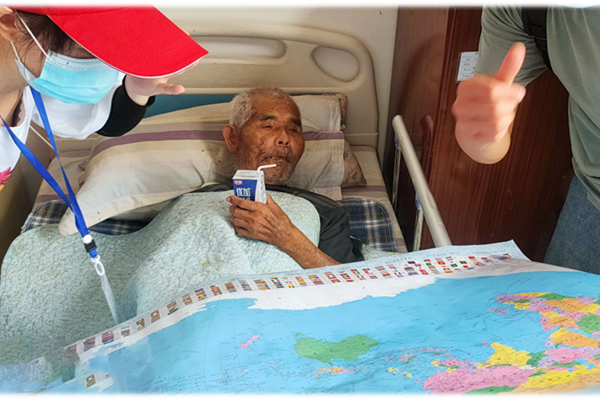 活动前,队员将公益寝室所得资金购买水果、蛋糕、牛奶等物品,提前联系敬老院负责人,做好疫情防控工作。活动当天,队员们亲切依偎在老人们身旁,听他们诉说当年的光荣历史,淳朴的语言流露出浓浓的爱国情、爱党意。老人们有参加过抗美援朝战争的老兵,有拥有40年党龄的老党员,他们虽然年迈,但曾经的光辉岁月依然记忆犹新。老人们乐于见到年轻的面孔,队员们也深深被他们的故事吸引,场面其乐融融。