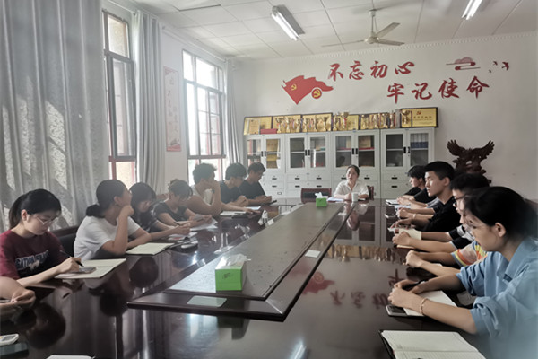 杨小晗带领与会人员认真学习习近平总书记在庆祝中国共产党成立100周年大会上重要讲话,并结合学院团学工作实际进行阐释。她强调,作为学院主要团学干部,要认真学习系列重要讲话,汲取奋斗力量,并积极带领团支部青年学子共同学习交流,要把青年团员的思想认识统一到习近平总书记“七一”重要讲话精神上来,把深入学习“七一”重要讲话精神同团支部日常工作结合起来,更加有效地做好团支部建设工作。她指出,作为新时代青年学子,我们要牢记总书记的嘱托:“以实现中华民族伟大复兴为己任,增强做中国人的志气、骨气、底气,不负时代,不负韶华,不负党和人民的殷切期望”。
