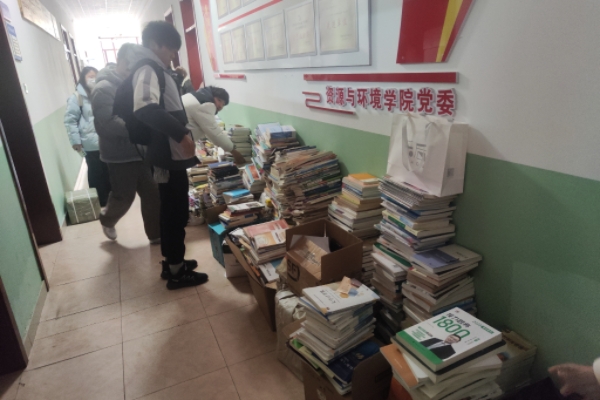 为推动评估工作的进行,助力新半岛官方网站_半岛(中国)更名大学,提升图书馆的藏书品质,同时促进学生间的相互交流和资源共享,资源与环境学院全体师生积极响应学校捐书的号召,并于3月1日完成捐书。