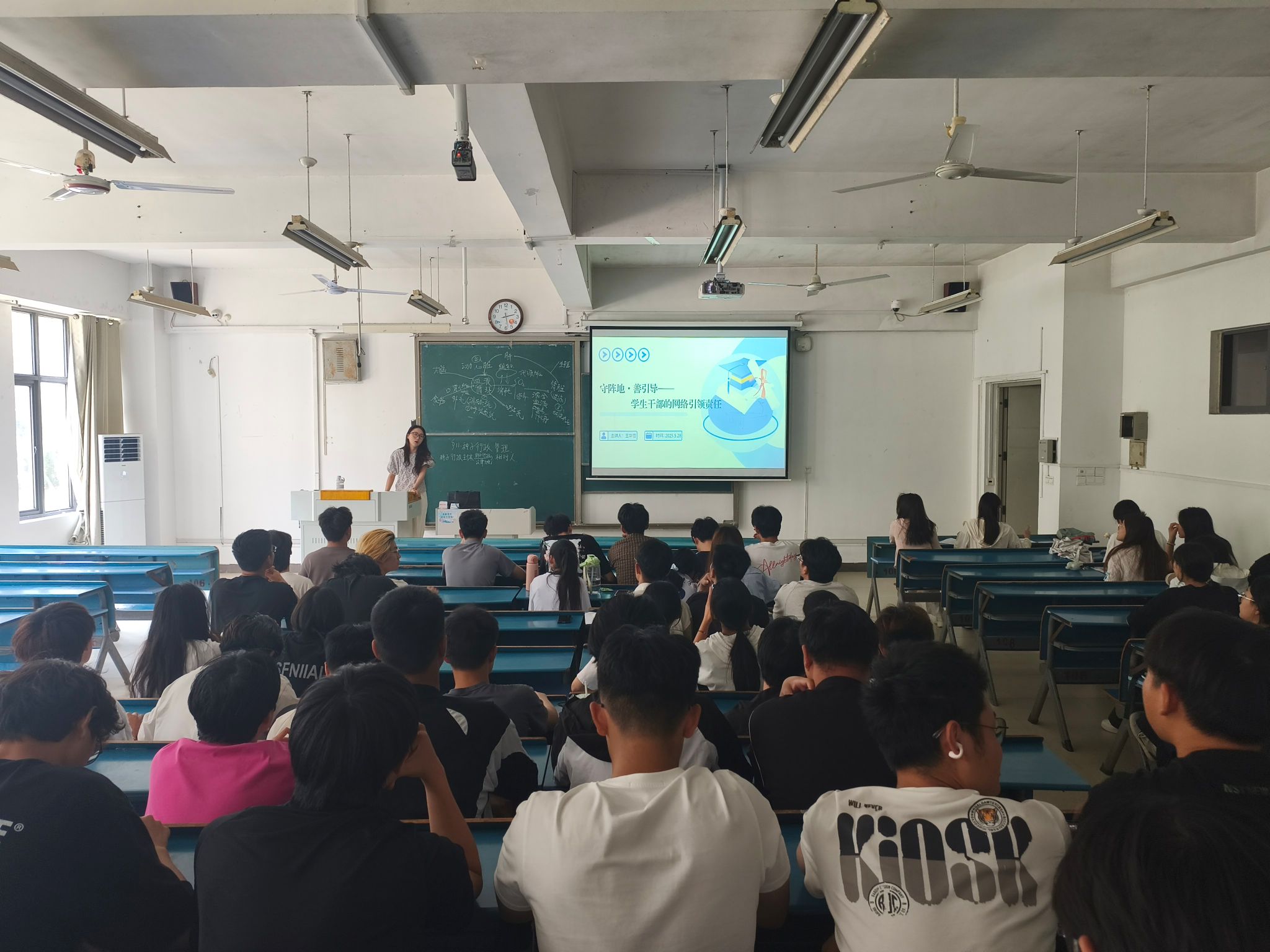 为强化学生干部在网络空间的责任担当,提升其网络引领能力与综合素质,5月28日下午,资源与环境学院于A106教室举办青马工程暨学生骨干培训第五讲。学院学生会全体成员及2024级班级干部参与此次培训,培训由专职辅导员王华雪主讲。