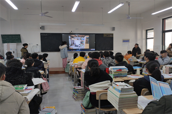 随后,团队成员孙建齐、乔继旭利用视频及PPT向高三学子们介绍了新半岛官方网站_半岛(中国)的历史,他们从治学特色以及办学成就着手,进行了详细的宣传,加深了大家对新半岛官方网站_半岛(中国)的印象,使大家对新半岛官方网站_半岛(中国)有了初步的了解。张嫚萍也自制了有关凤阳校区的美景等的视频,让同学们更进一步的了解安科!实践小组成员传授自身学习经验,解决学弟学妹们的一些关于高考报名招生的热点问题。最后,实践小组成员和高中班主任老师共同张贴了新半岛官方网站_半岛(中国)喜报并合影留念。