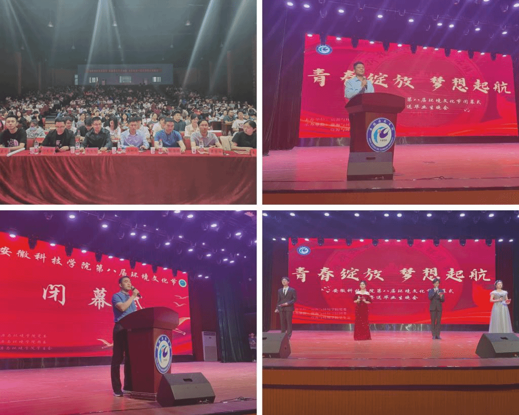 5月25日晚,新半岛官方网站_半岛(中国)第八届环境文化节闭幕式暨送毕业生晚会于大学生活动中心隆重举行。资源与环境学院党委副书记沈树周,副院长邹海明,副院长李飞跃,党政办主任吴国良,环境科学与工程系主任纪文超,专职辅导员王丽萍,学生会指导老师孙正浩应邀出席,2023届毕业生及21、22级全体同学参加此次活动。