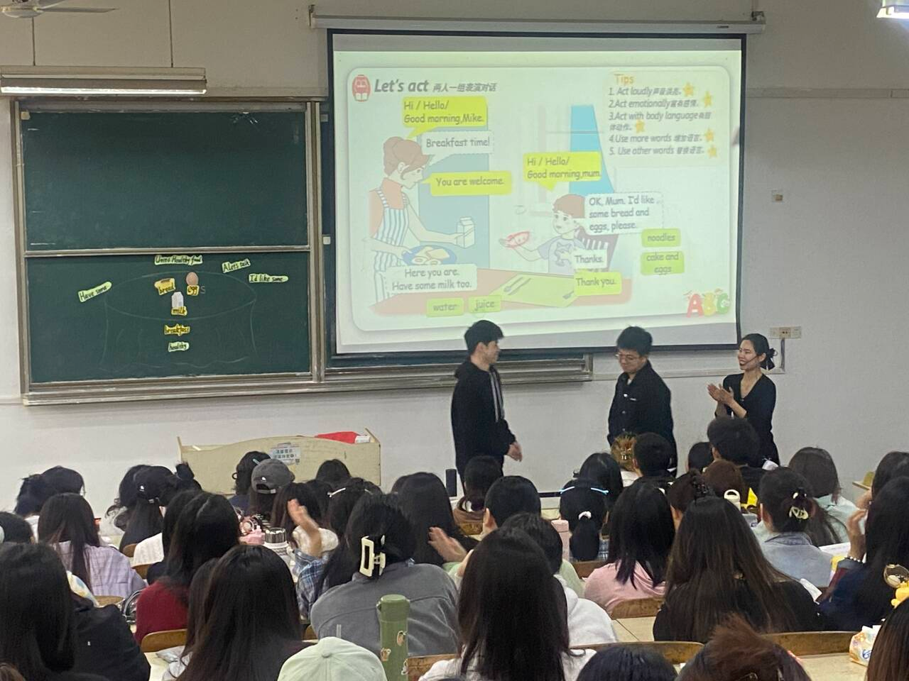 讲座中,康立红凭借其扎实深厚的专业素养和丰富的教学经验,深入剖析了初高中英语知识衔接的关键问题。她巧妙运用思维导图,并结合具体例句,系统地介绍了高中语法体系,着重对八大句子成分和三大句子类型进行了细致讲解,为学生们梳理出清晰的语法学习脉络。紧接着,戴世纯以“Healthy food”为主题,展示了一堂精彩纷呈的小学英语示范课。戴老师科学的教学设计、充满活力的讲解、有效的师生互动、流畅的英语表达给学生留下深刻印象。此外,戴老师还分享了教师面试的注意要点,内容涵盖仪容仪表、教态、教学基本功以及板书设计等多个方面,为学生们开启未来职业发展大门提供了参考。