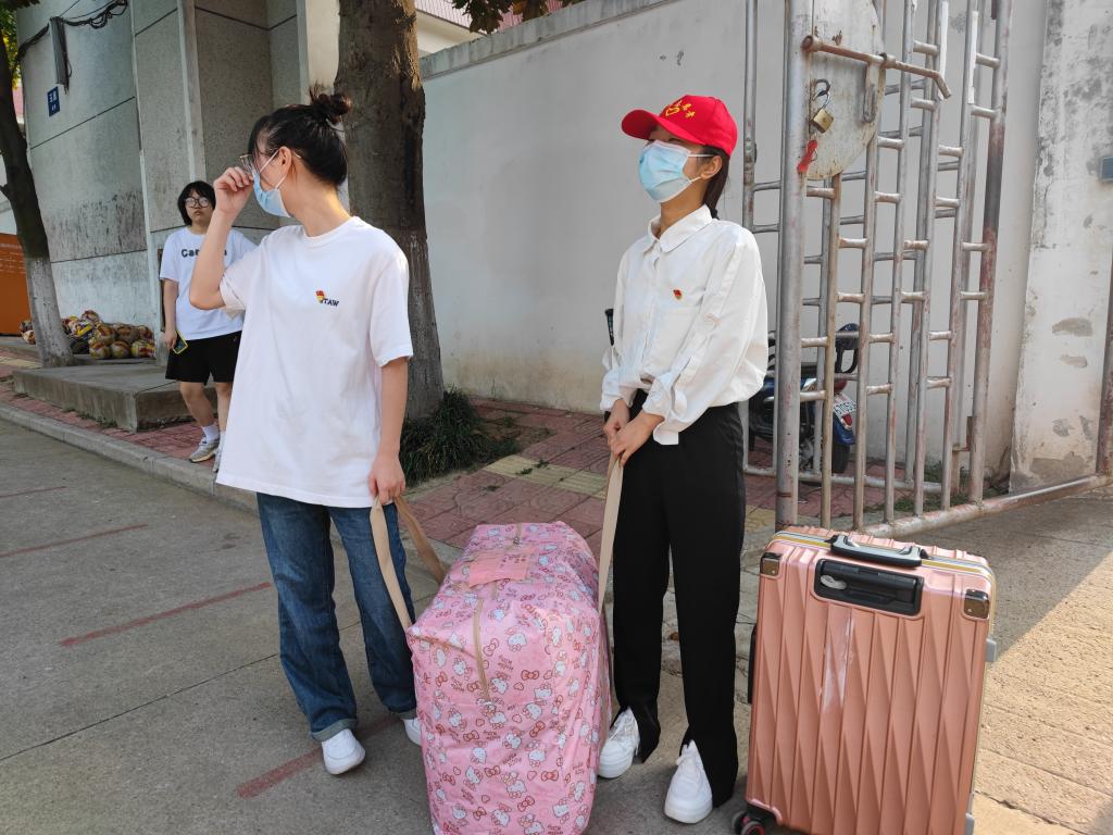 迎新现场,学生党员们佩戴党员徽章亮身份,负责引导新生报道,搬运新生行李过天桥直至亲自送到宿舍,帮助新生整理好床铺,指引新生采购公寓用品等工作。学生党员们带头冲在前面,从消杀通道接过家长手中的行李开始,撸起袖子肩扛行李,报道现场不断涌现出他们热情服务的场景,尤其是搬运行李中汗流浃背的身影,让新生感受到了外国语学院这个大家庭的温暖。学生党员就像一块块“砖”,哪里需要哪里搬,他们以实际行动发挥党员先锋模范作用,践行党员的初心使命,扎扎实实为群众办实事,让党旗在基层一线高高飘扬。