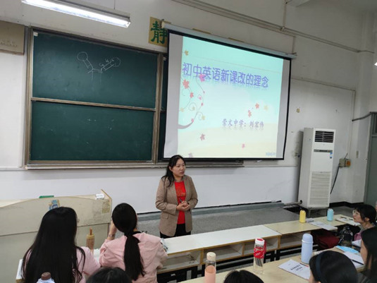 报告中,刘宏伟老师就语言知识、语言技能、情感态度、学习策略以及各部分的不同层级目标等方面详细阐述了新课改后的中学英语的教学理念。她强调学习态度在教学活动中的重要性,指出教师要树立新的教学观,倡导以学生为主体的教学模式,用因材施教的教学方式帮助学生树立信心,培养学生的学习兴趣,进而提高全体学生的英语成绩。在本次讲座中,她把自己多年来从事中学英语教学的宝贵经验无私地分享给了在座的师范生。