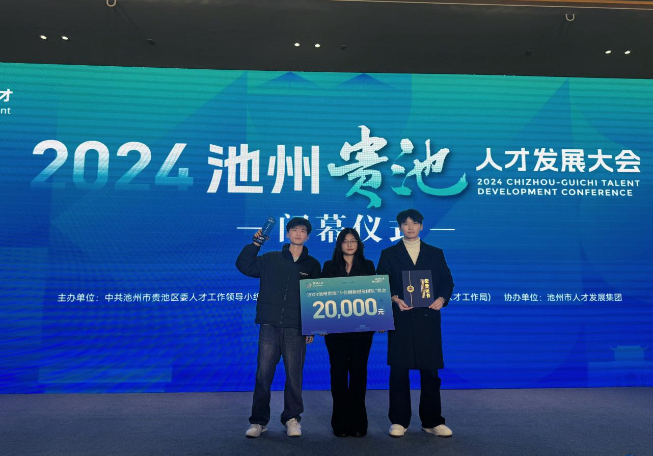 12月20日,2024池州•贵池“十佳创新创业团队”决赛在安徽池州市贵池区成功落下帷幕。我校信息与网络工程学院信息技术创新工程实验室(Information Technology Innovation Engineering Laboratory,ITIE)王伪蓉、夏俊杰、李世鹏等同学斩获大赛第一名,荣获池州市贵池区“十佳创新创业团队”。