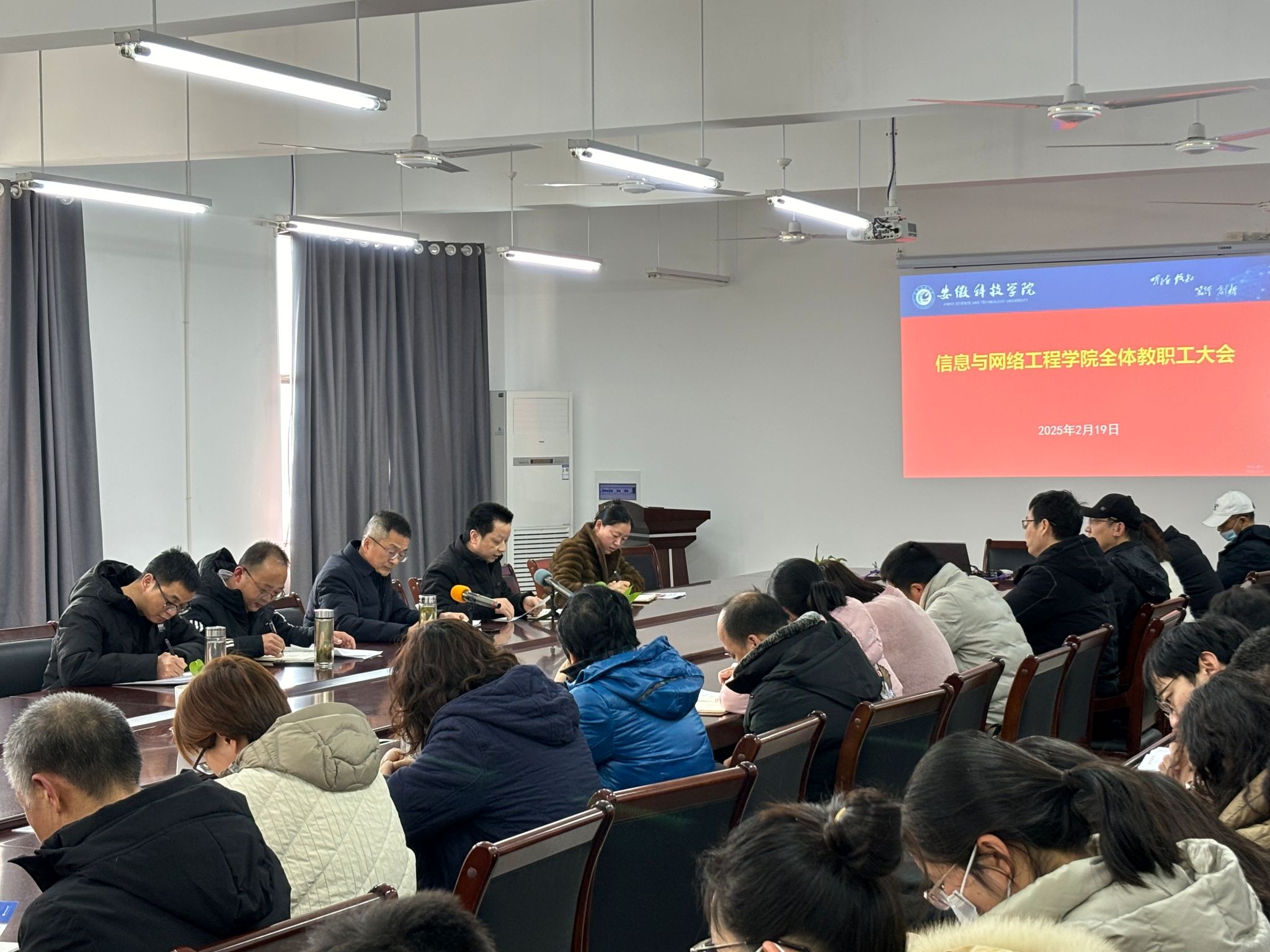 2月19日下午,信息与网络工程学院在尚行楼B418召开全体教职工大会。学院党政领导和全体教职工参加会议,会议由学院党委书记王振其主持。
