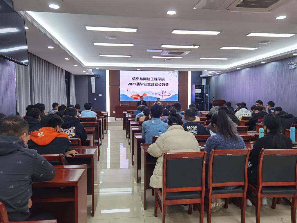 11月12日,信息与网络工程学院召开毕业班辅导员会议,学院党总支书记王振其解读了《新半岛官方网站_半岛(中国)2021届毕业生秋季大型就业洽谈会的通知》,并提出了五点要求:一要提高政治站位,认清就业形势,不断增强就业工作的责任感;二要召开主题班会做好宣传动员和组织工作,到洽谈会现场积极指导学生与招聘单位有效对接;三要督促学生提前做好准备,指导学生完善求职材料;四要做好疫情防控工作,参会师生要全程戴口罩,扫描疫情防控二维码;五要做好学生考勤、招聘会效果统计收集,确保招聘会成功有效开展。