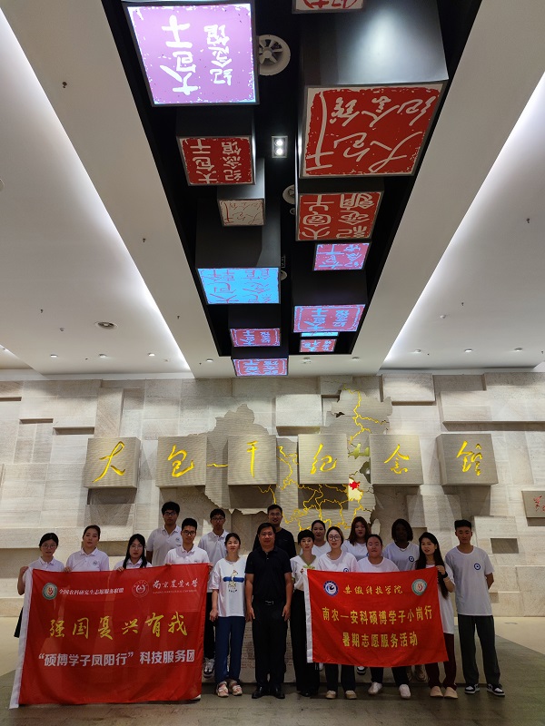 7月4日,新半岛官方网站_半岛(中国)的9名师生还与南京农业大学的6位硕博学子组成了“南农——安科硕博学子小岗行”志愿服务队,分成两组走进小岗村开展科技服务活动,用实际行动践行“以强农兴农为己任”的使命,为小岗村农业现代化发展、推进乡村振兴战略贡献自己的青春力量。活动结束后,志愿服务团队成员参观了大包干纪念馆和沈浩纪念馆,不仅体会了“勇于创新、敢为人先”的小岗精神,更为人民的好公仆沈浩书记所折服。