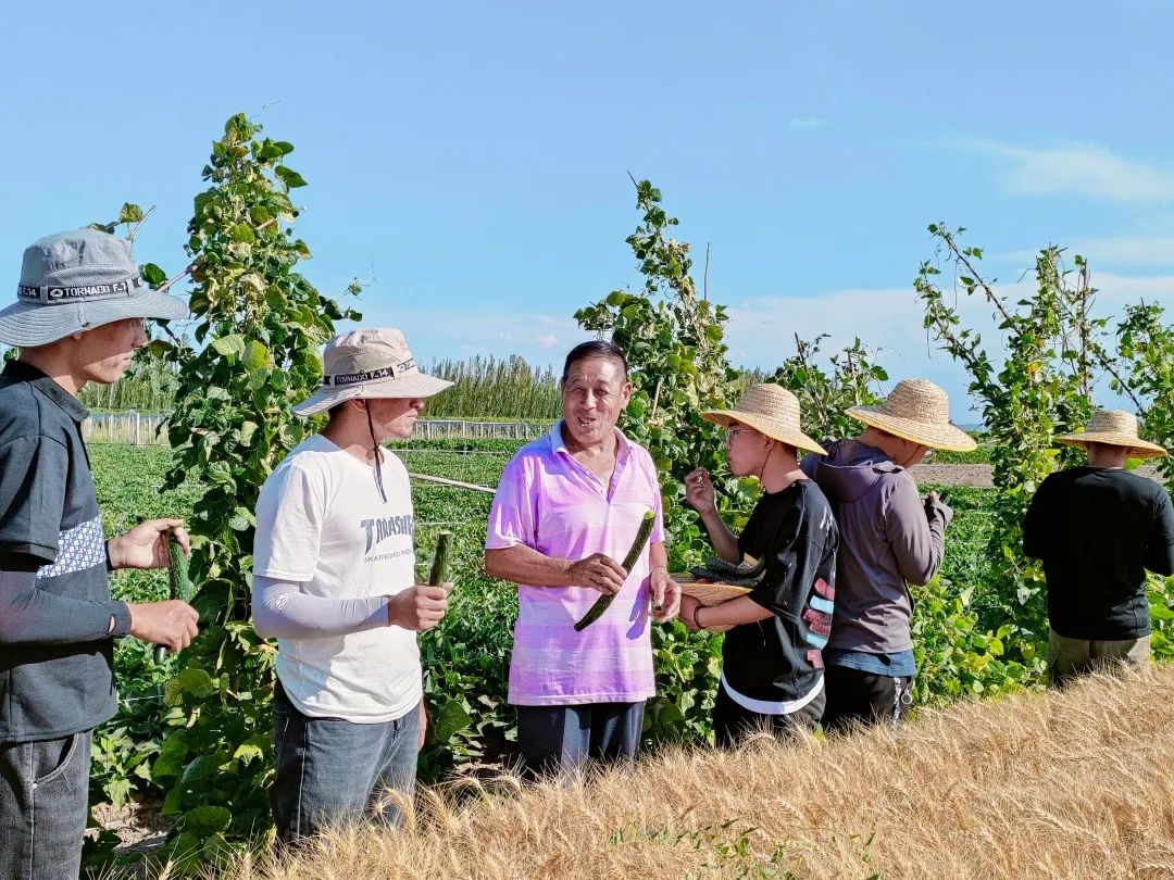 休息之余,农户会热心地拿来自家种植的绿色蔬果,让大家解渴消暑。闲聊间,队员们也会向农户分享关于小麦高质高产、科学种植的建议、为当地农业生产排忧解难。随后,队员们又怀着饱满的热情,干劲十足地投入到测产工作中。
